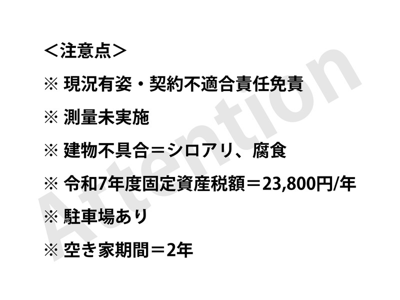 おすすめポイント◆前橋駅・高崎駅どちらも車45分のWアクセス! ◆コンビニ徒歩5分・スーパー20分で生活便利! ◆お好みにリフォームして移住・投資に◎
