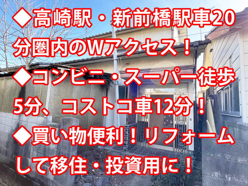 おすすめポイント◆高崎駅・新前橋駅車20分圏内のWアクセス! ◆コンビニ・スーパー徒歩5分、コストコ車12分! ◆買い物便利!リフォームして移住・投資用に!