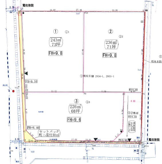 650万円 坪単価:9.5万円/坪 | 土地面積226.21㎡ 坪数68.43坪 私道負担面積 |