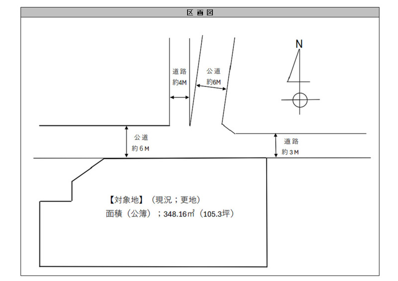 460万円 坪単価:4.37万円/坪 | 土地面積348.16㎡ 坪数105.31坪 私道負担面積 |