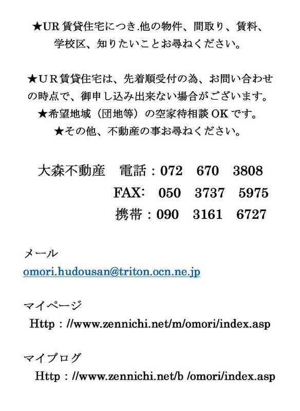 カルチェ茨木 901物件画像数8周辺画像数0動画数010.5万円管理費等:12,000円敷金なし礼金2ヶ月保証金なし間取4LDK専有面積89.26㎡構造鉄骨鉄筋コンクリート物件種目マンション階建/階10階建/9階築年月1983年7月下旬(築42年9ヶ月)所在地茨木市豊原町交通大阪モノレール彩都線 豊川駅 徒歩27分不動産会社:(株)アリオ Net Work 鳳駅前店阪和線(天王寺~和歌山) / 鳳 徒歩 2分詳細を見るとりあえず保存お問合せ(無料)